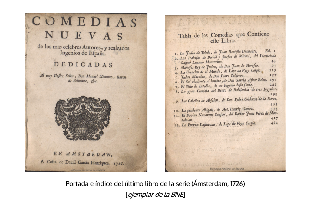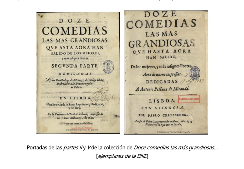 Así pues, el inicio de la singladura en la imprenta del teatro triunfante se produce con cierto retraso, motivado posiblemente por la inseguridad de que la propuesta fuera a prosperar, y en un taller que no se ubica en el que ya es el foco principal de la producción escénica de ese teatro, Madrid, ni en las otras capitales que lo siguen en importancia, como Sevilla, Valencia o Valladolid; sino en Lisboa. Eso sí, se trata de un taller que tendrá un sostenido papel en la edición teatral de las primeras décadas15.
