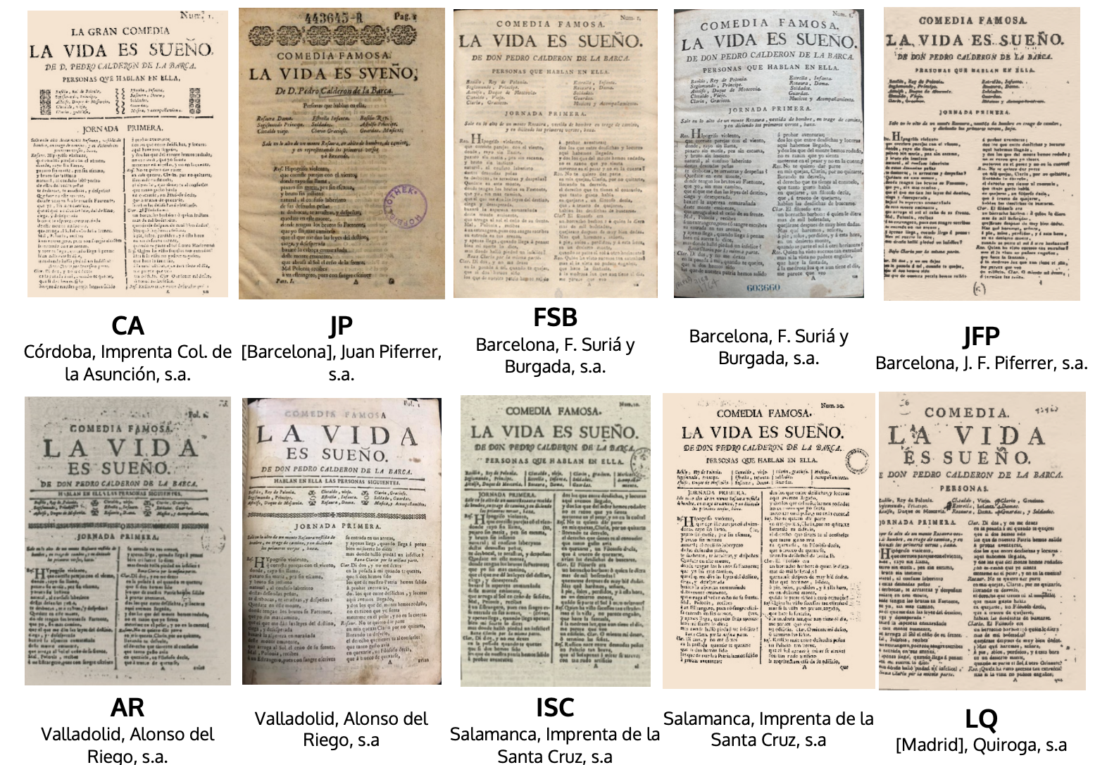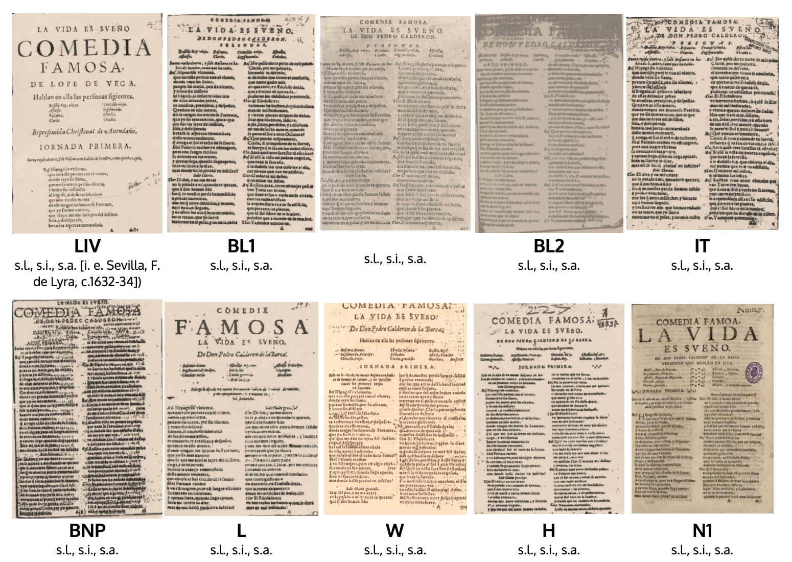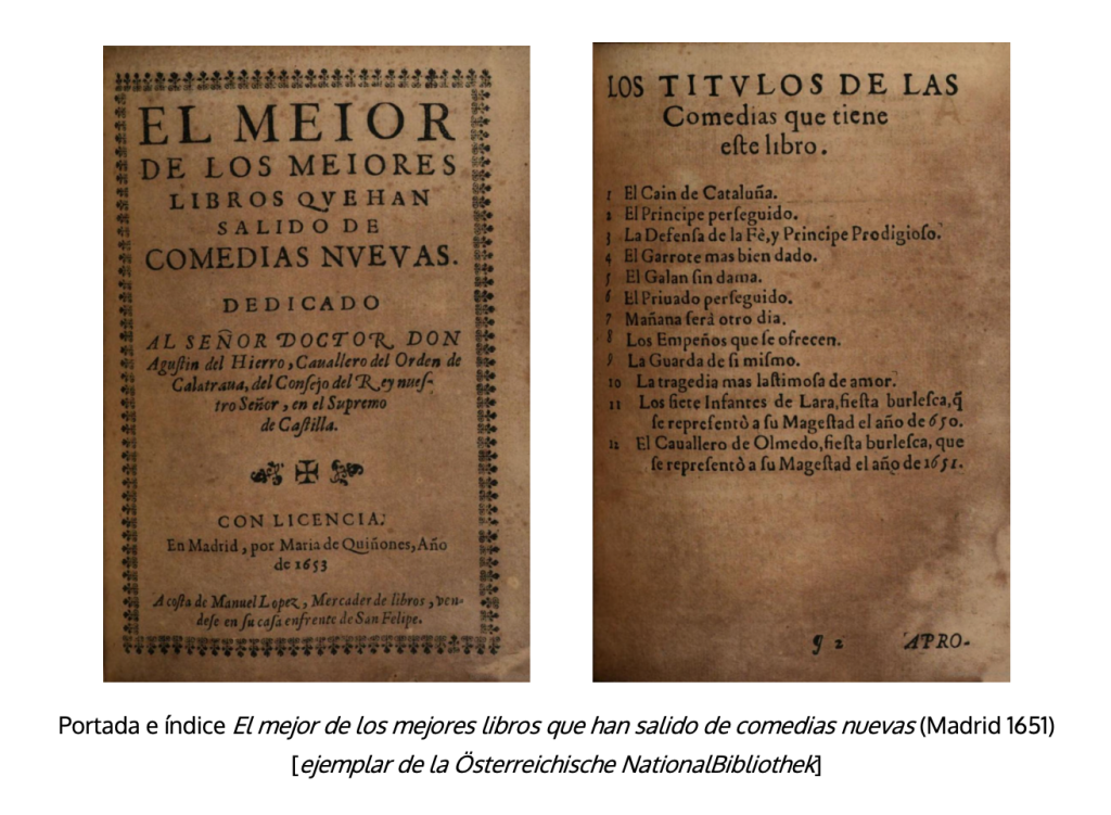 2Está aún por registrar el número de textos que hoy podemos leer y qué proporción guarda con el de los que se escribieron y se han perdido. Respecto al primero se repite en distintos trabajos la cifra de 10000, que incluiría los distintos géneros. Parece que el origen del apunte está en La Barrera que lo calcula muy grosso modo [1860: IX]. Ni siquiera estamos en condiciones de afirmar si se acerca a la realidad; lo que nos habla de lo que aún nos falta para controlar bibliográficamente el teatro del Siglo de Oro, y en especial el escrito bajo los auspicios de la Comedia Nueva. Más difícil aún es señalar cuántos manuscritos e impresos antiguos se conservan. Acercarnos a esas cifras nos ayudará a conocer aspectos importantes de ese fenómeno que tanta repercusión tuvo dentro y fuera de nuestras fronteras; podría incluso—mediante diferentes operaciones, para la que serían de gran ayuda las herramientas digitales, y en particular la inteligencia artificial— apuntar una cifra más o menos aproximada del volumen total de obras que circularon. Sobre la posibilidad de algunos cálculos parciales hablaremos más adelante.
