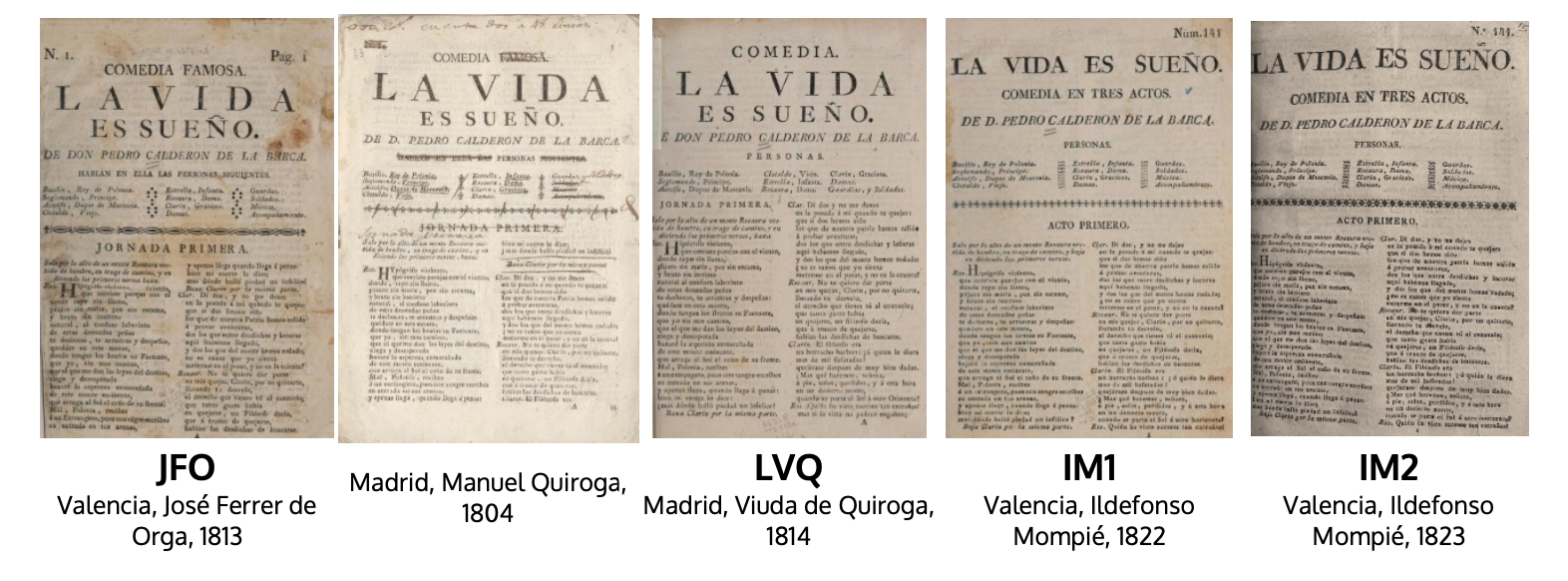 La imprenta ha sido especialmente importante para la conservación del teatro de Calderón: de las más de diez docenas de comedias que con autoría exclusiva o en colaboración hoy podemos leer29, ninguna se ha transmitido solo en manuscritos, y son casi una cuarentena las que cuentan con impresos como únicos testimonios. El conjunto de ediciones antiguas calderonianas alcanza un volumen enorme: las ya registradas y las conjeturables nos hablan del predomino editorial del dramaturgo en el panorama general de la literatura de ficción desde las primeras ediciones de sus obras, hacia 1630, hasta el primer tercio del XIX (Vega 2002a).